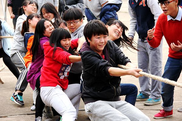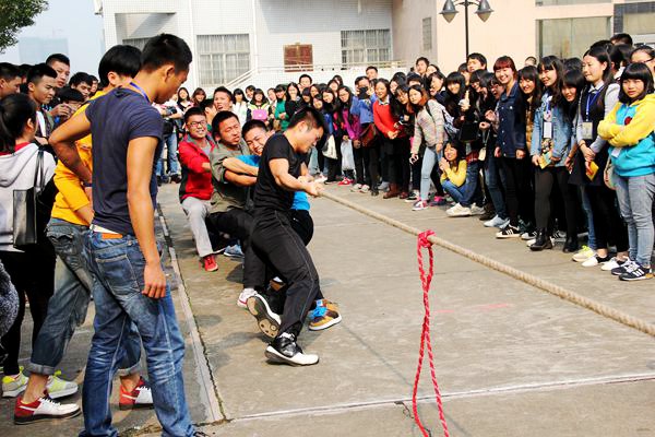 11月21日中午12:30,best365官网人文社科体育学部于第五教学楼前坪举行“万人拔河"比赛初选。本次比赛参与人员为13、14级同学,共33个班级,分为男生组甲组,女生组乙组,其中每班选出10人参赛。