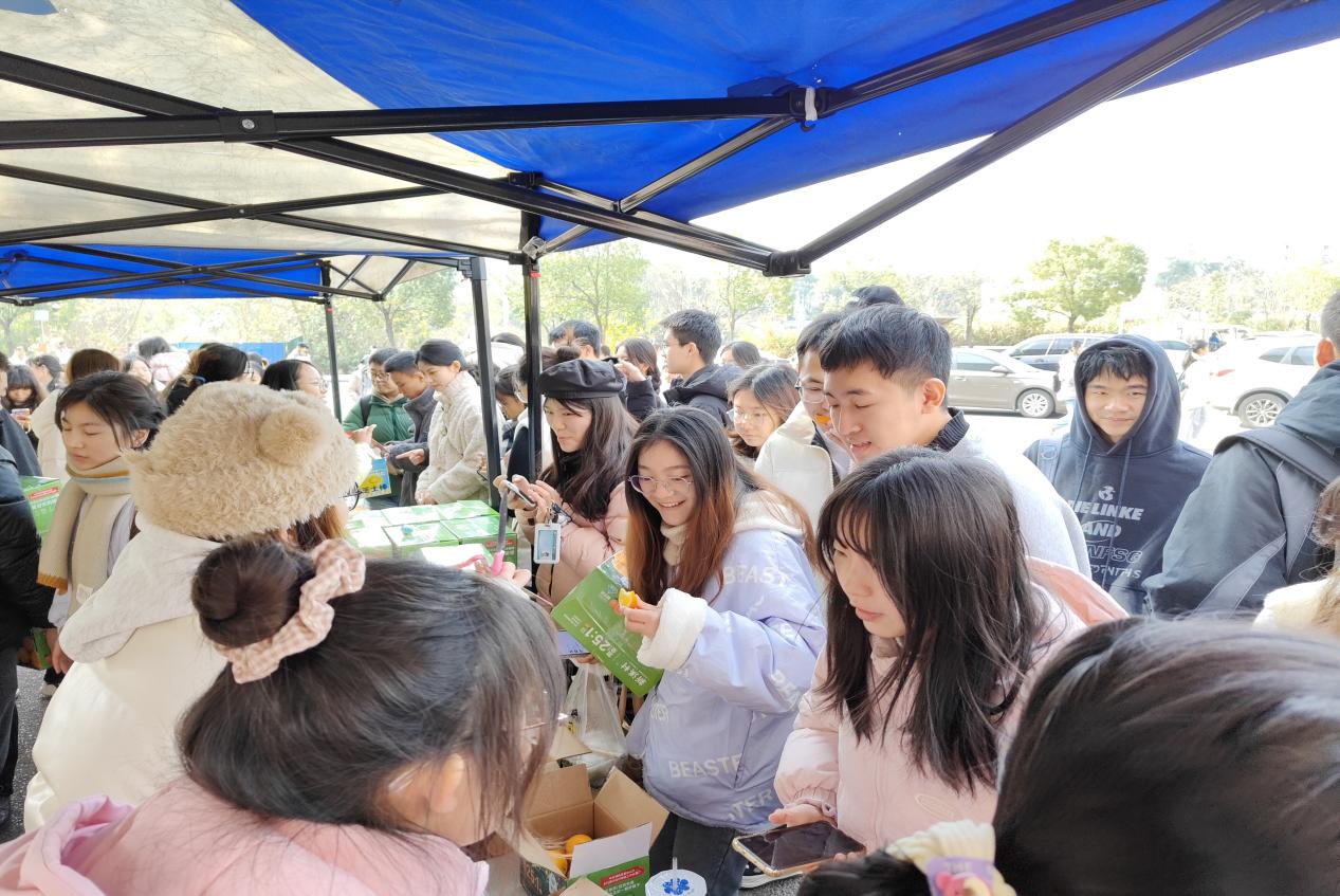 三白馆前坪,现场气氛热烈高涨,爱心助农摊位热火朝天。为了让大家更直观的感受农产品,小摊设置了试吃环节,不少路过的老师、同学们纷纷前来试吃,积极购买,不断响应爱心助农的号召。大家在奉献爱心的同时,也为建设和谐校园添加了一道亮丽的风景线。