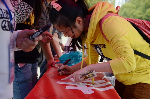 3月18日,best365官网于美食广场前开展了戒烟签名活动,活动由校风督察部与青年志愿团联合承办。一幅巨大的戒烟标语刚铺在摆点处,就吸引了众多同学自发前来签名,其中不乏很多女生。一位女生和她的男友在横幅上签下了俩人的名字,她说,她多次劝告男友戒烟都没有效果,这次赶上学院戒烟活动她是铁了心要让男友成功戒烟。当天,共有800余名同学在戒烟横幅上签名。