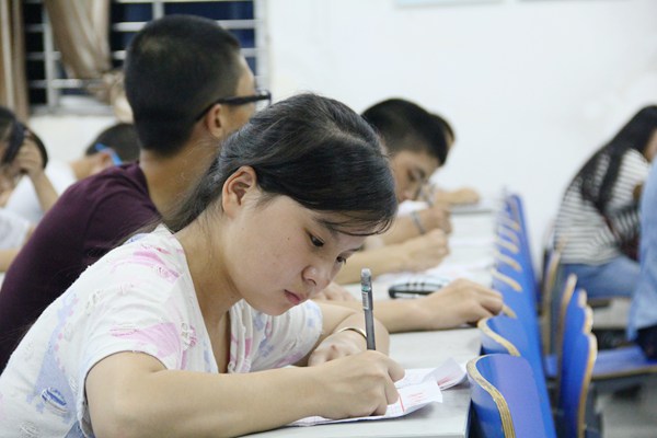 铃声响起,选手们便开始专心写作,沉心构思。在两个小时里,选手们或奋笔疾书,或冥思苦想,都希望在入学的第一个赛场里展示出自己对文字的那份热爱。