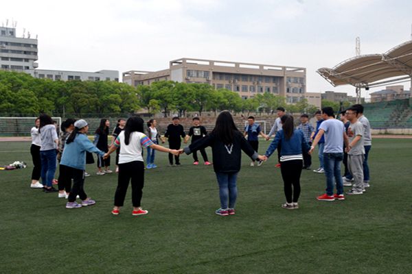 活动开展分为四个小组,由四名教官分别带队。四个小组的成员首先做了自我介绍,然后由教官带领做一元五角、坐地起身、信任背摔、毕业墙、穿越电网和团队有我更精彩六个项目。其中最精彩的部分要属信任背摔了,保护学员站成两排,前排学员伸直胳膊,掌心朝外,双手交叉,十指交叉握紧从胸前翻出,双手紧贴胸口。后排学员距前排学员一步,成弓步站立,两手向前平伸,手心向前,指尖向外,胳膊肘弯曲,准备做保护动作。台上的同学垂直倒下来由下面的学员接住。这个活动既紧张刺激,带动了现场气氛,又培养了学员之间团结协作的能力,增进了学员之间的互信,可谓一举多得。