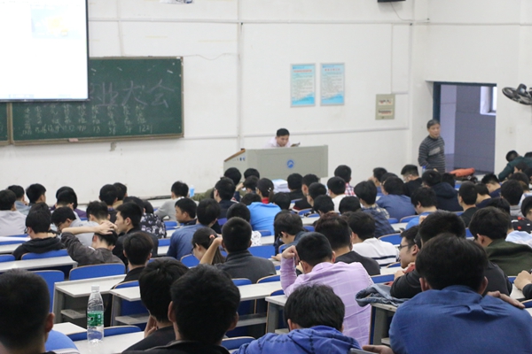 各班级的学生都井然有序地入场并按班级秩序坐好。首先是陈度华作为代表向大家讲述了许多就业方面的关键内容:就档案和报到证的去向、就业情况、就业帮扶、新疆、西藏的公务员考取、毕业后的补考以及对毕业证的申请、档案材料、毕业生登记表、处分等重要文件的处理、缴费和离校手续的办理、兵役登记表和学籍信息表的填写等方面做了详细分析。这些内容都是对毕业以及就业起到举足轻重的作用,在会议中同学们全神贯注的听取陈度华讲解,拿着笔认真做好相关记录,在他的讲解中进一步向毕业生强调了选择毕业和就业的重要性。