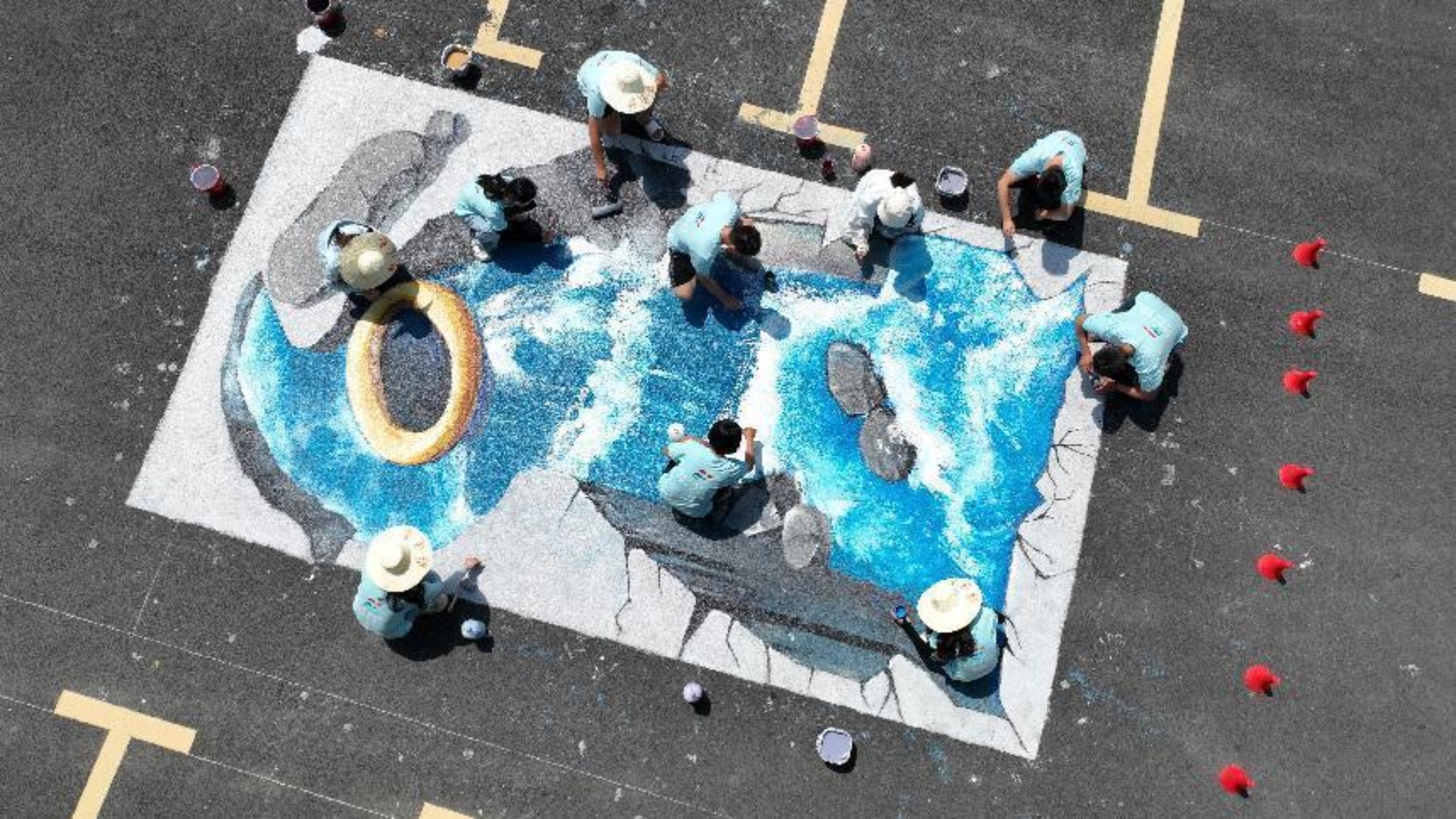 本次“激流勇进”3D立体地绘选址于木脚村停车广场,左邻景区星空绿岛,右跨河便桥、鱼鳞坝、游步道,与溪上村南国第一漂——龙底漂流遥相呼应,串联“山”“水”“田”“村”等要素,精心打造新绿亮又富有乡土文化特色的美丽彩绘,方便旅游游客直观感受木脚景色之美。