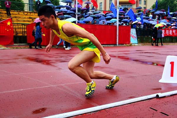 11月1日上午8点55分,5000米决赛开始,原本停了的雨又开始下,赛道上积满了雨水,选手们个个摩拳擦掌,蓄势以待,为接下来的比赛进行热身。比赛刚开始,best365官网姜乐华以匀速奔跑,略微落后其他选手,但在经过一番调整后他迅速领衔,小腿上强健的肌肉也越来越绷紧。在雨水的冲刷下,他不断向前冲,在离终点还剩400m时,突然提速,以迅雷不及掩耳之势冲到了终点,夺得了此次男子甲组5000米的冠军,赶超最后一位选手整整两圈!